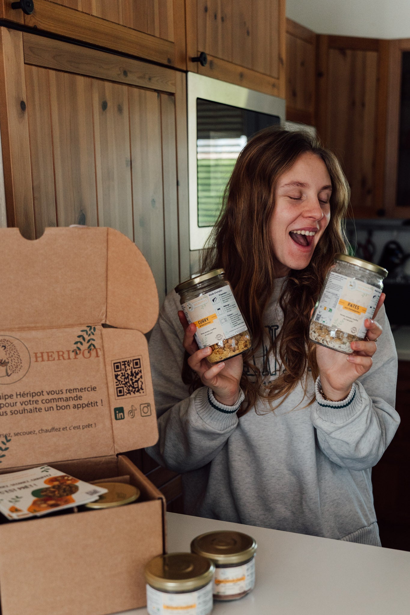 Avec Héripot, profitez d’un repas savoureux et équilibré où que vous soyez, à la maison comme au bureau. Nos bocaux légers et hermétiques sont faciles à transporter, parfaits pour vous accompagner dans votre quotidien.